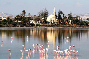 Larnaca Salt Lake is a distinctive and picturesque landmark, consisting of a network of four salt lakes of different sizes, with an overall surface area of 2.2km, located just off the road leading to the airport. It is considered one of the most important wetlands of Cyprus and has been declared a special protected area and is a prominent domain for wild birds. The lake is home to 85 species of water birds and is a primary migratory passage through Cyprus. It is visited by flocks of pink flamingos that reside there from November until the end of March, a breath-taking sight to see.